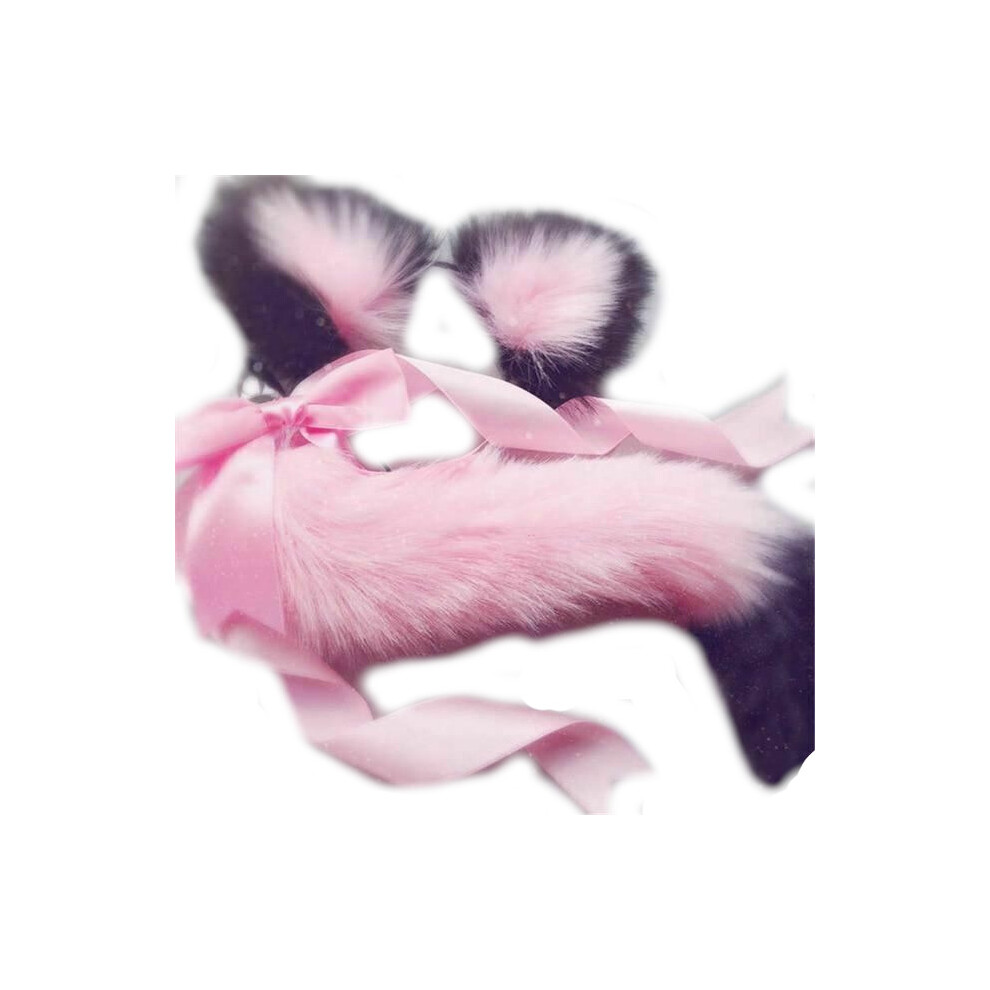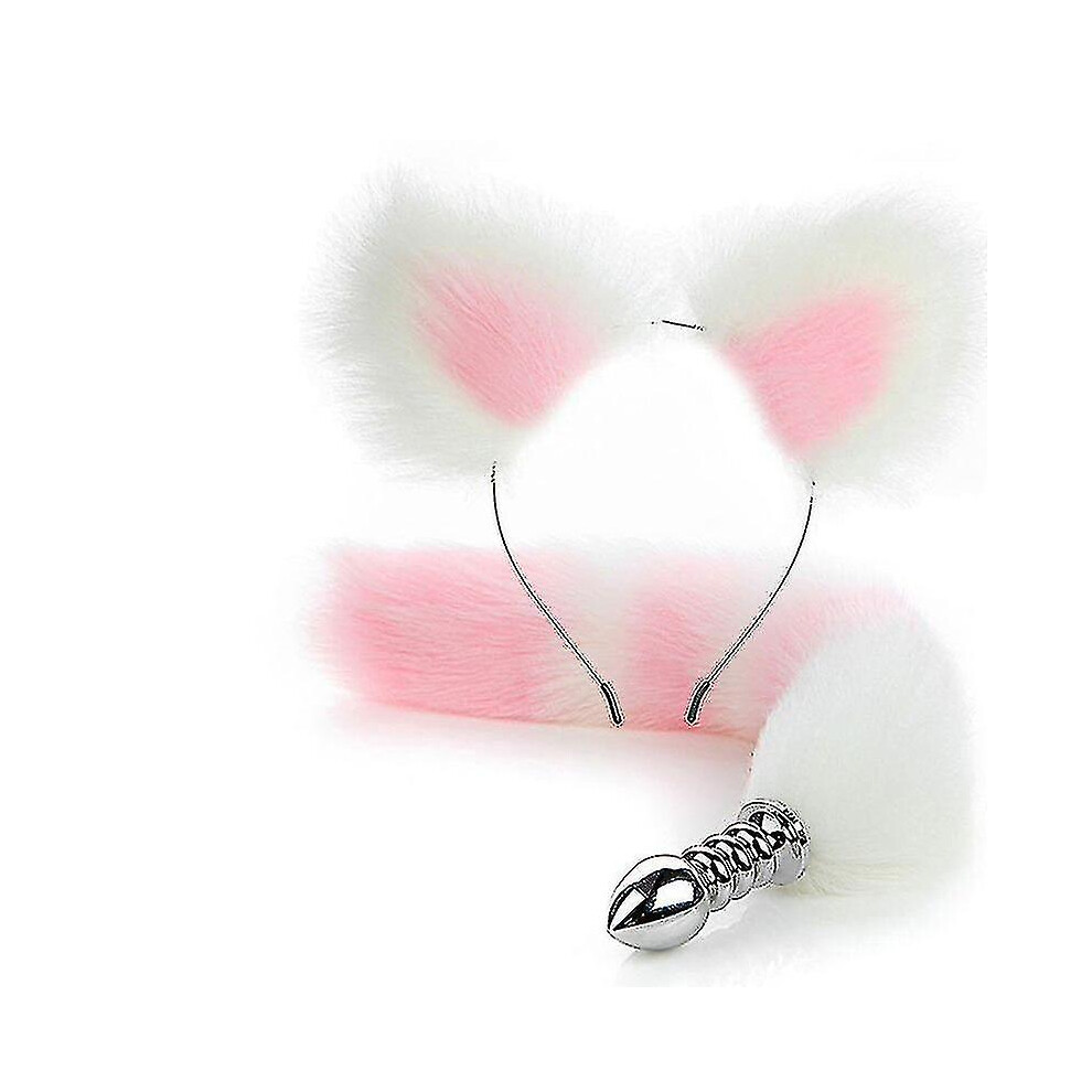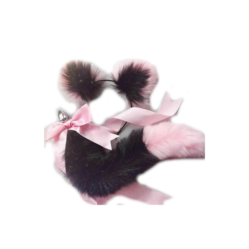 (Pink Black) Neko Cat Ears Headband With Fox Or Kitten Tail Metal Butt Plug Bdsm Cosplay