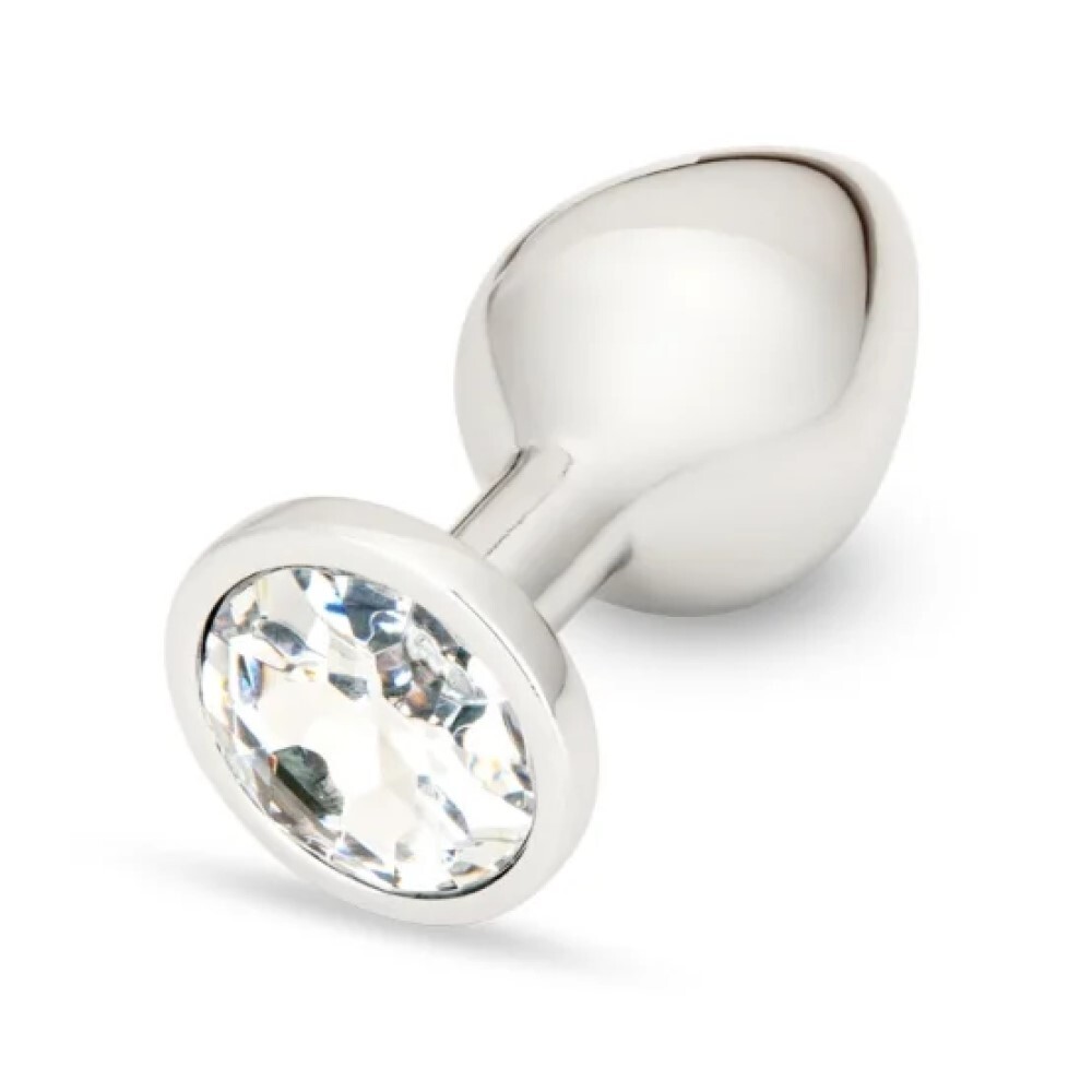 Clear Crystal Gem Stone Metal Large Jewel Butt Plug Silver Cute Bling Anal Toy