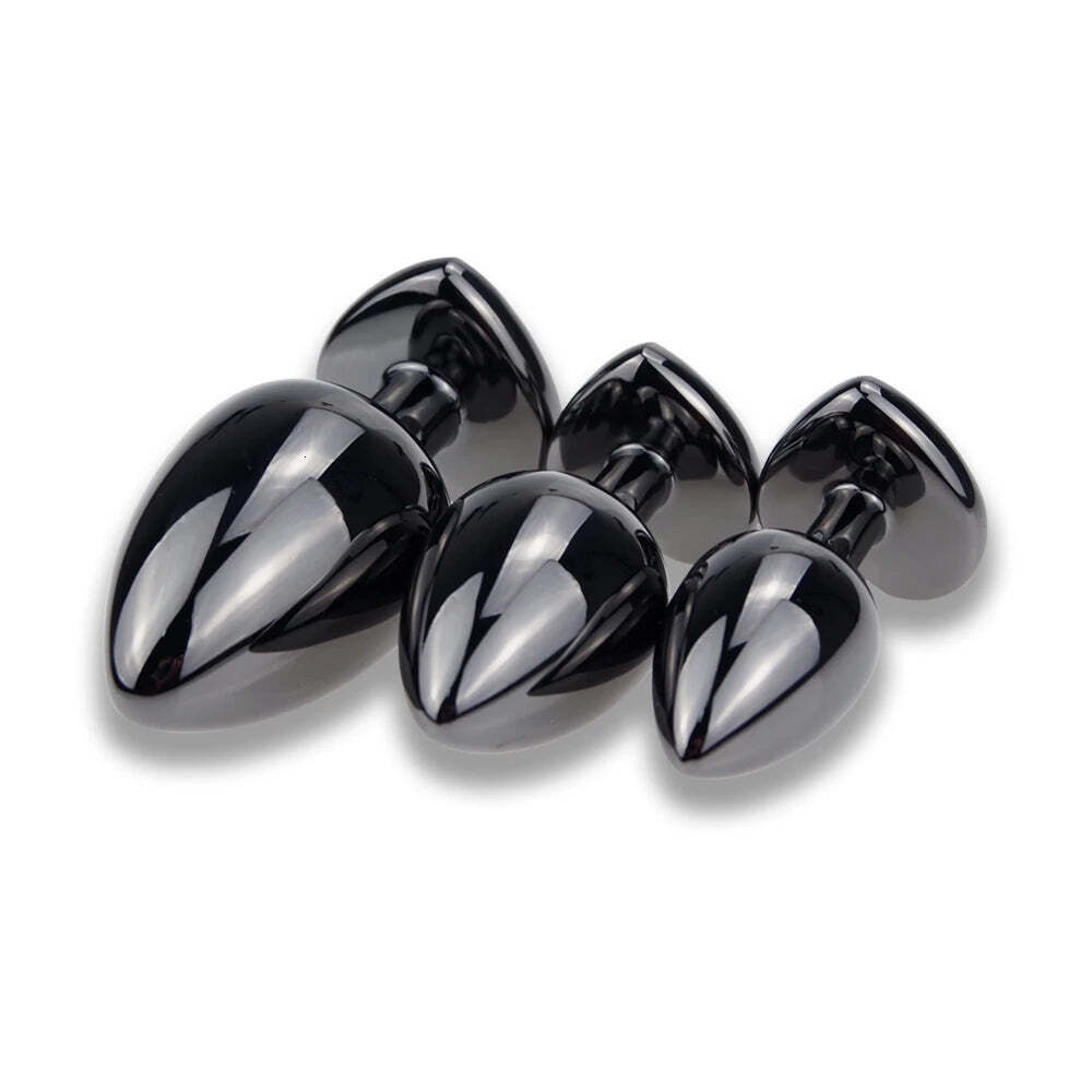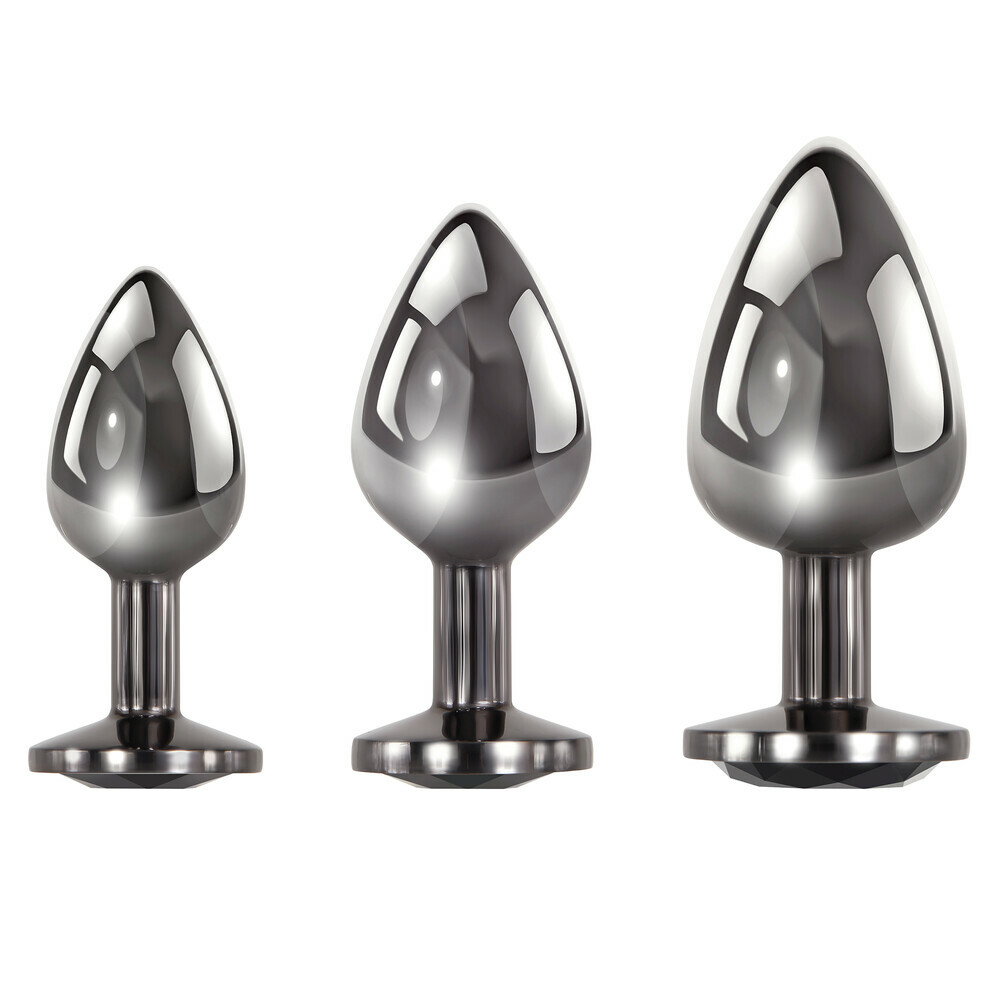 3pcs Black Jewelled Base Metal Butt Plug Set Sex Toy - Stainless Steel Anal Plug