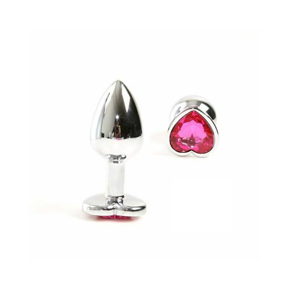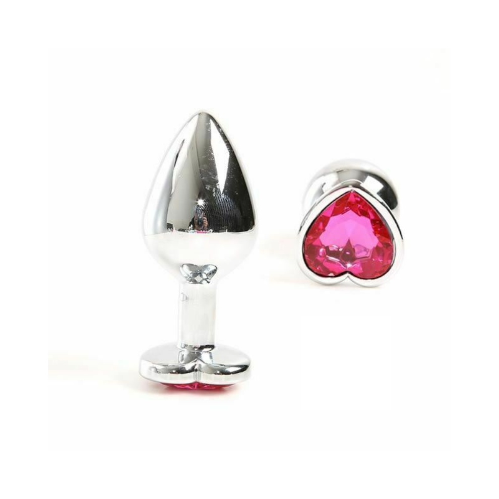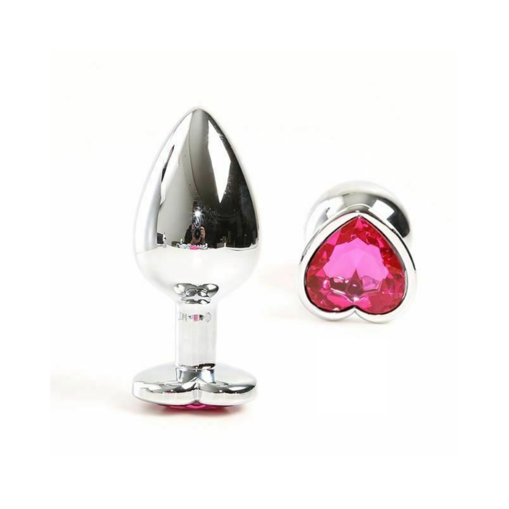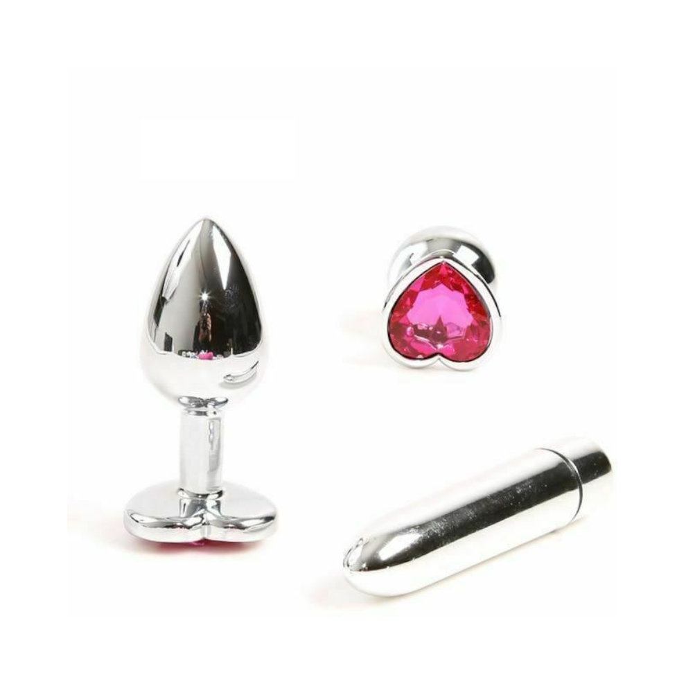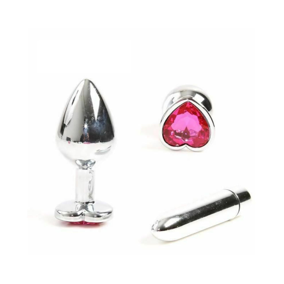 (Plug only, Medium) Pink Heart Crystal Jewel Metal Butt Plug Three Size Mini Bullet Vibrator Anal Training