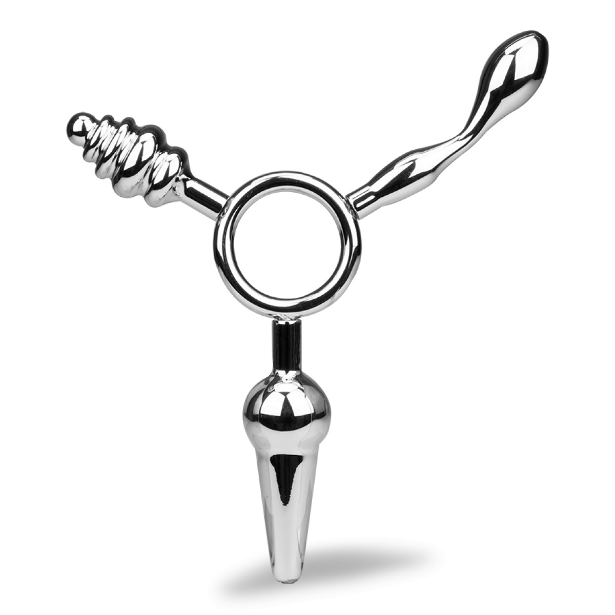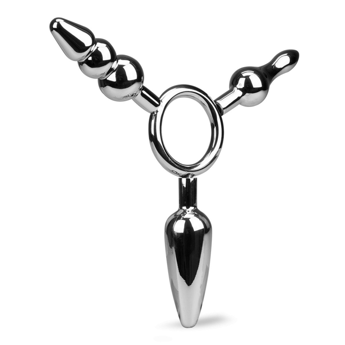 Rouge Stainless Steel Cock Ring & Anal Probe Mens Solid Metal Butt Plug Erection