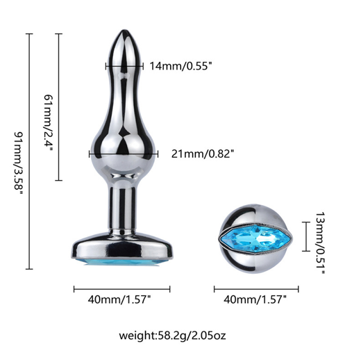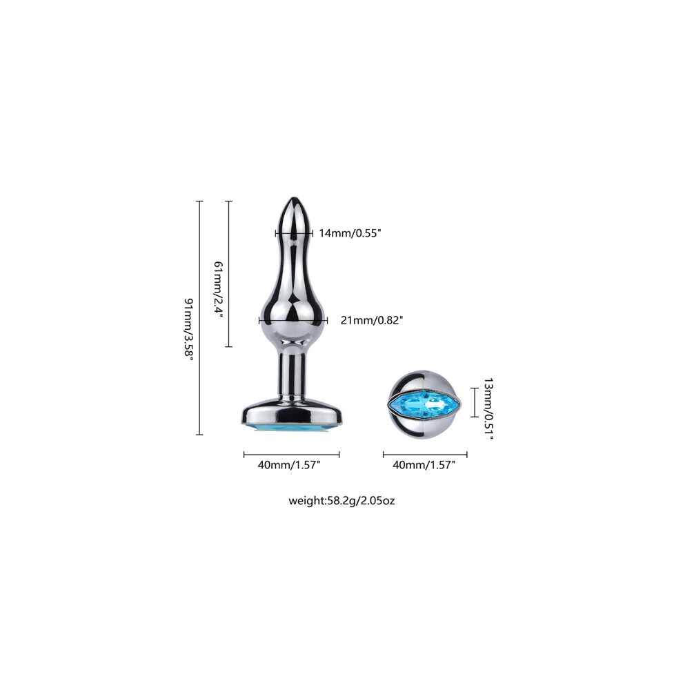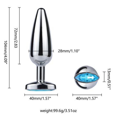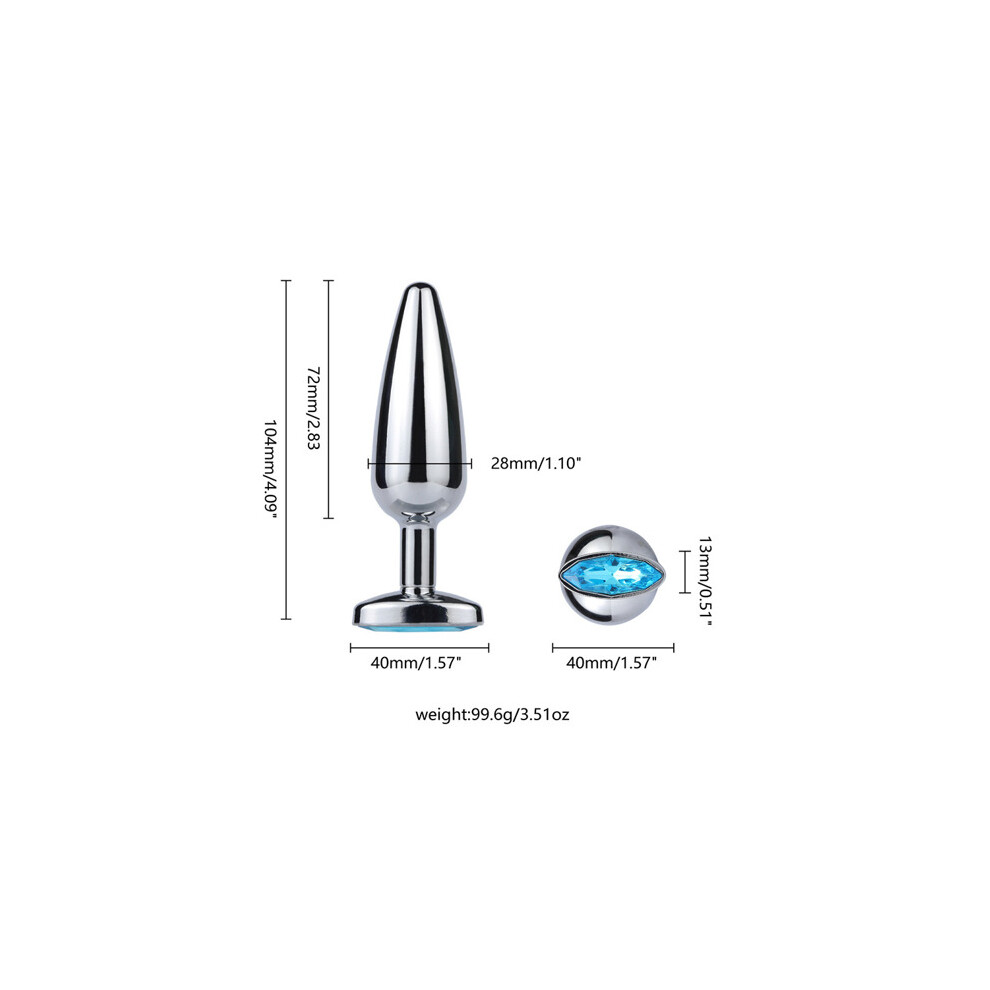 (Blue) Metal Jewel Rhinestone Butt Plug Masturbation Anal Fetish Bdsm
