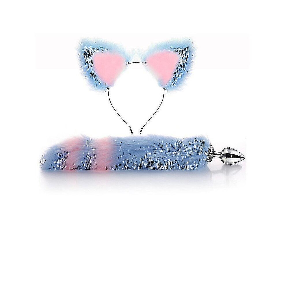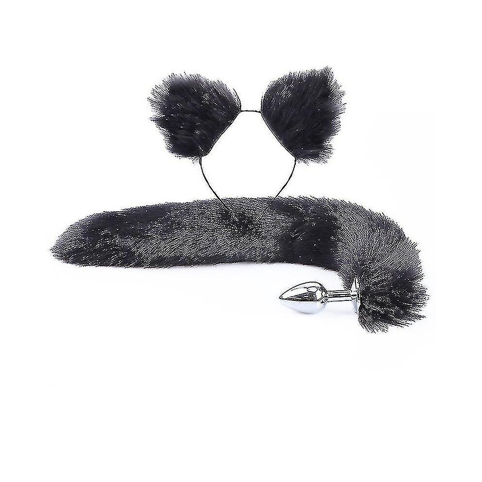 (Black Pink) Neko Cat Ears Headband With Fox Or Kitten Tail Metal Butt Plug Bdsm Cosplay