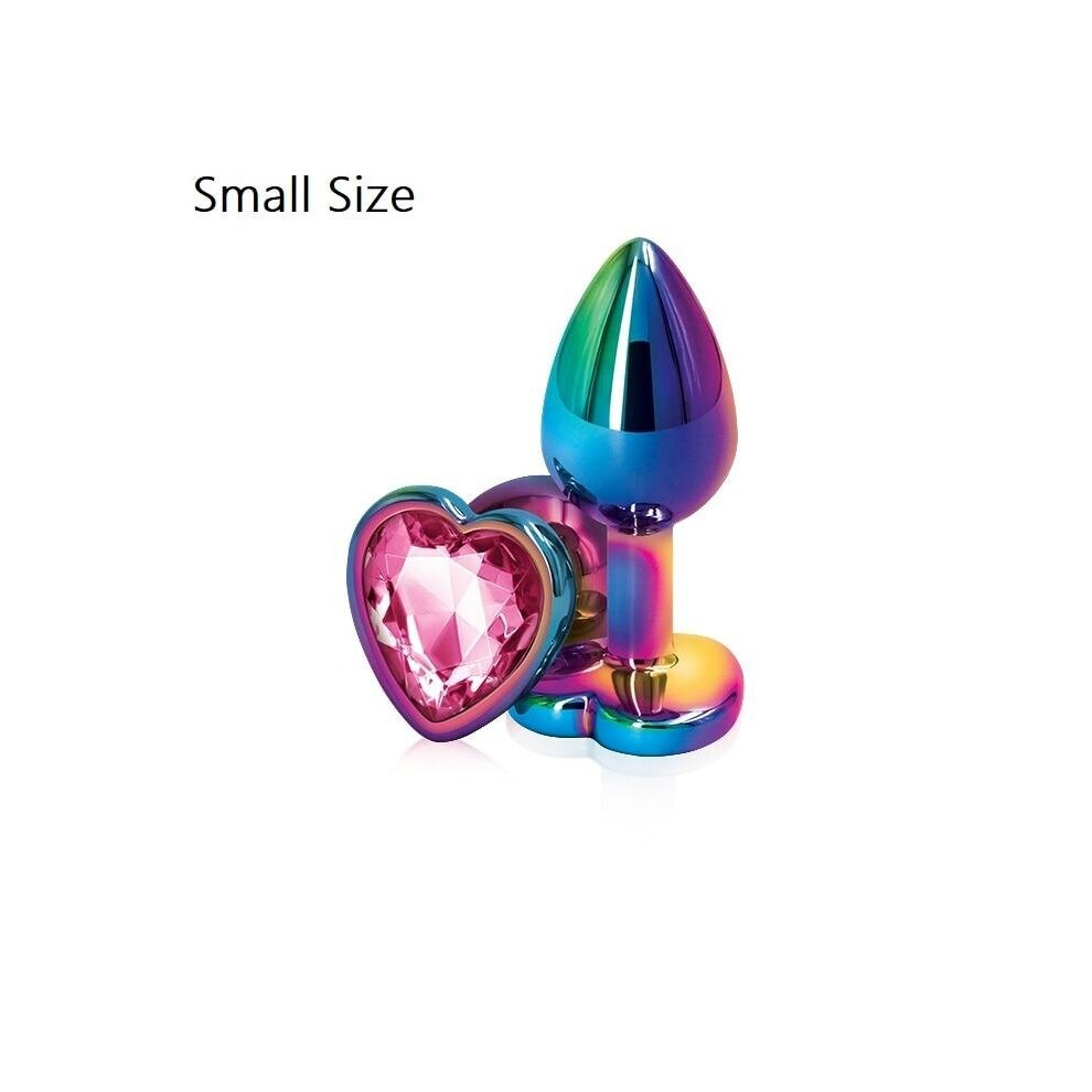 Rainbow Rose gold pink Small Medium size set Heart shape Crystal Metal anal beads butt plug Jewelry sex toy for female male