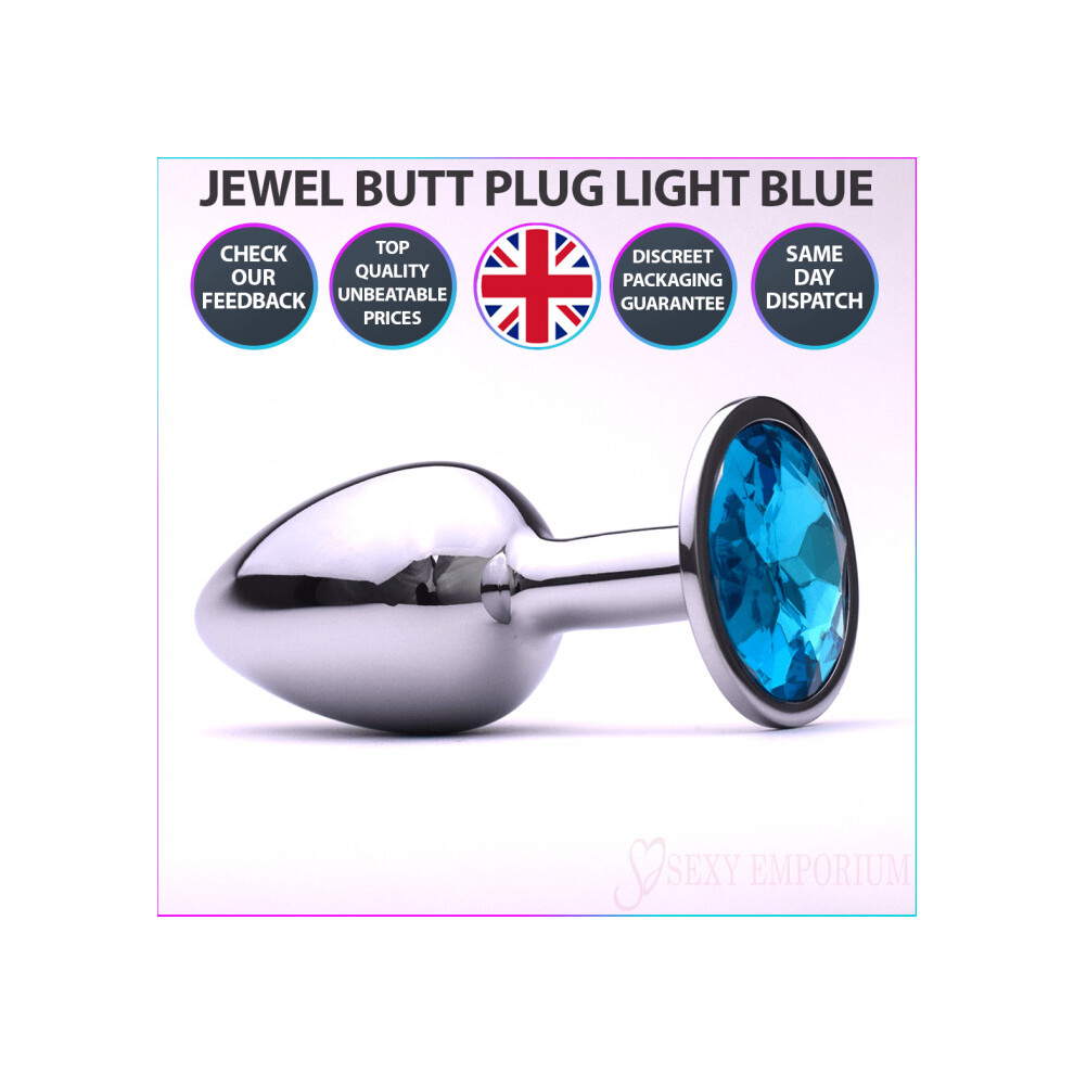 Sexy Emporium Jewelled Metal Beginner Butt Plug 3 Inch Light Blue