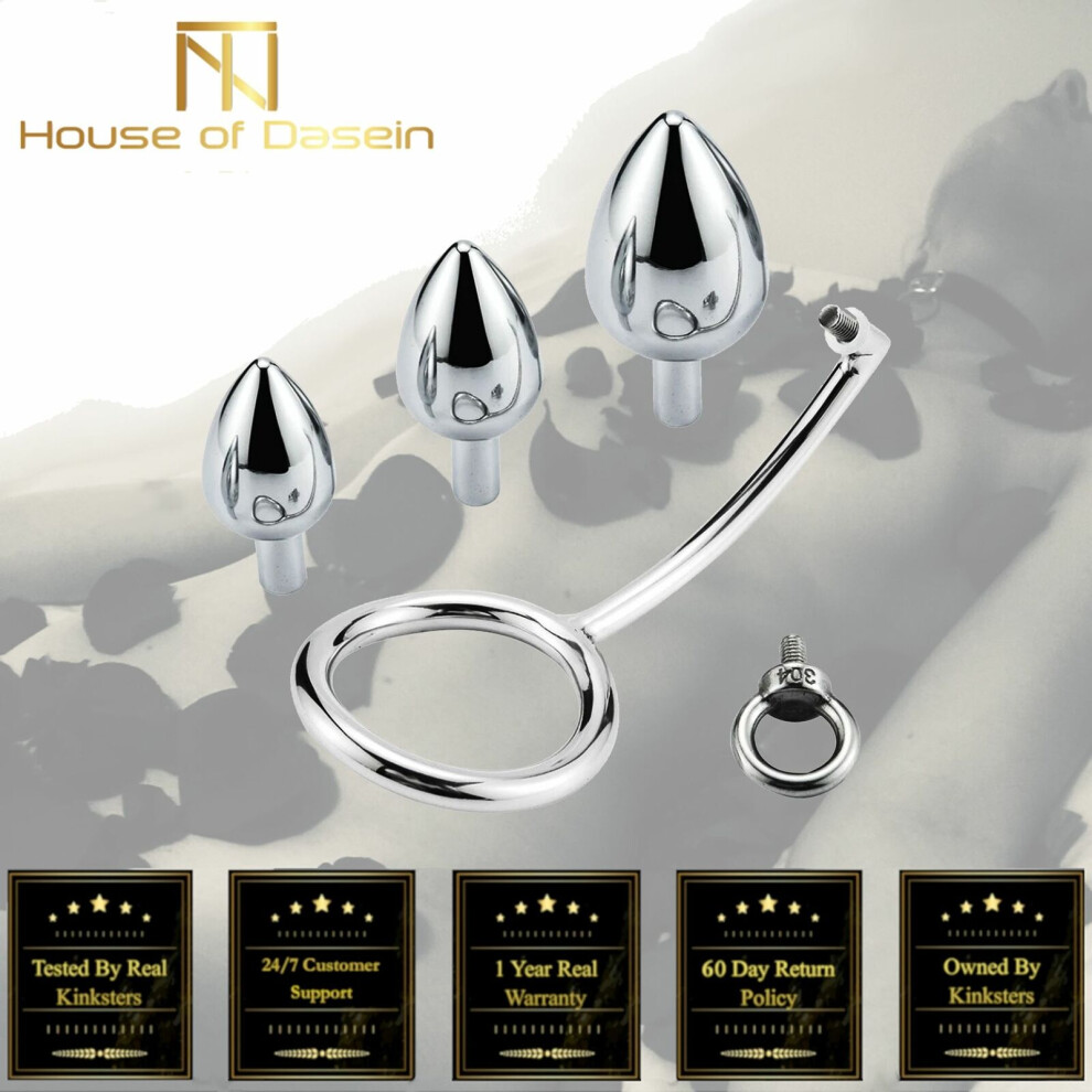 (S) Stainless Steel Anal With Cock Metal Butt Plug Penis Ring