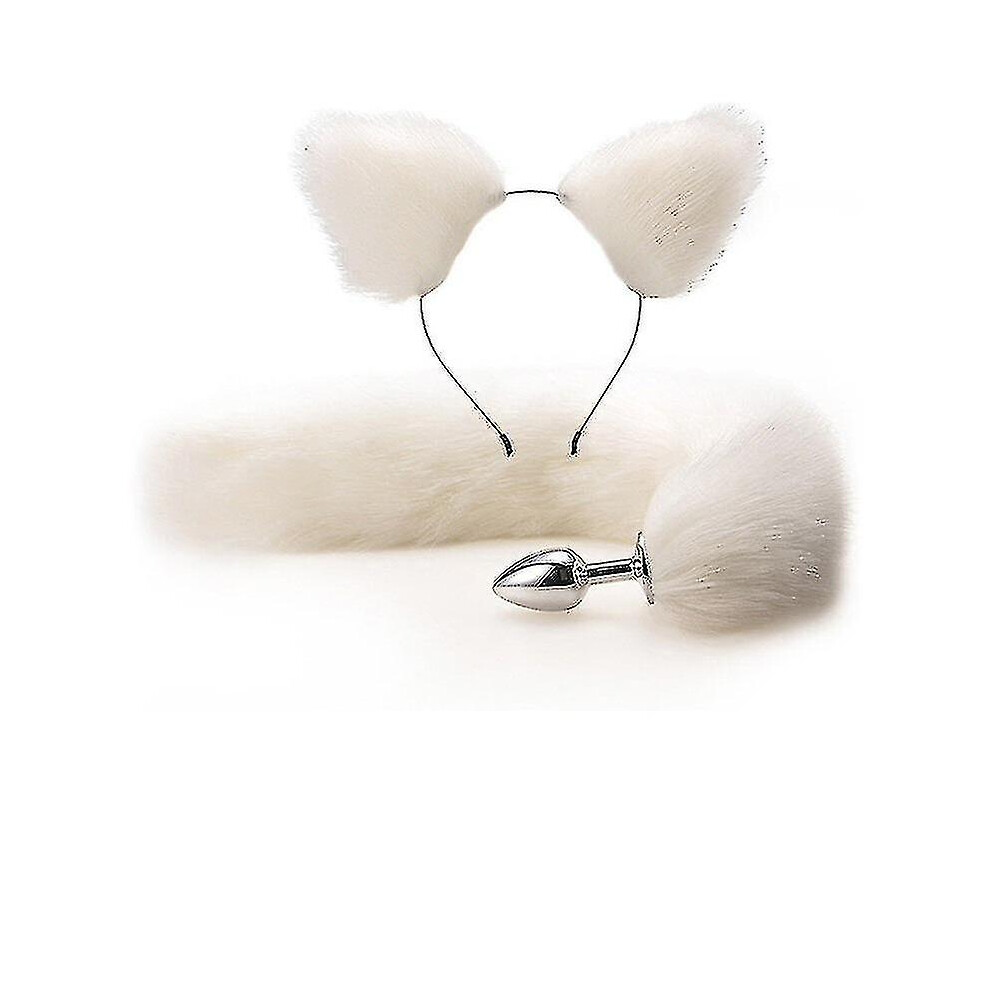 SEX TOYS 3 SIZE Soft Cat Ears Headbands 40cm Fox Tail Bow Metal Butt Anal Plug Erotic Cosplay Accessories