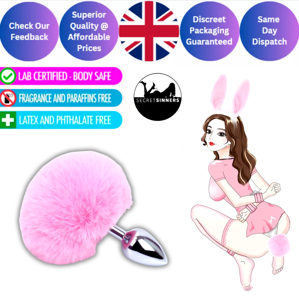 Black Faux Fur Bunny Rabbit Tail Metal Butt Plug Fantasy Cute Role Play Anal Toy