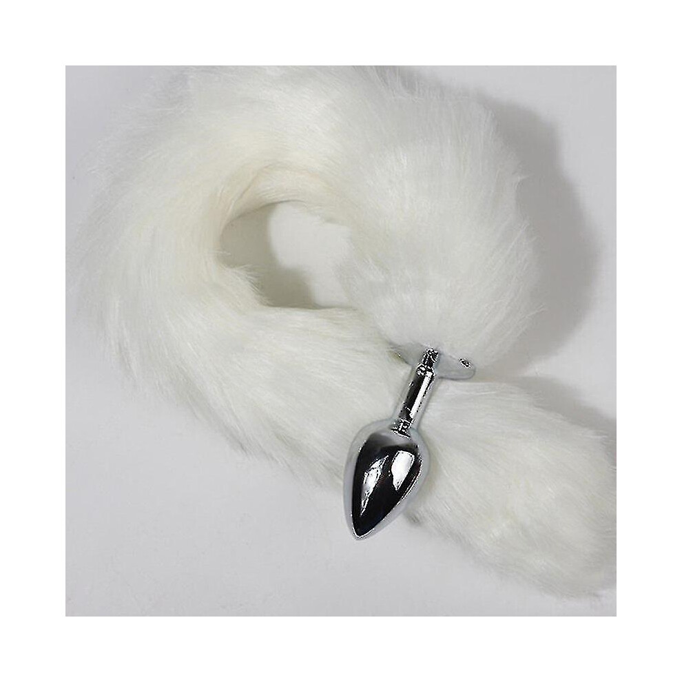 White Faux Fur Bunny Rabbit Tail Metal Butt Plug Fantasy Cute Role Play Anal Toy