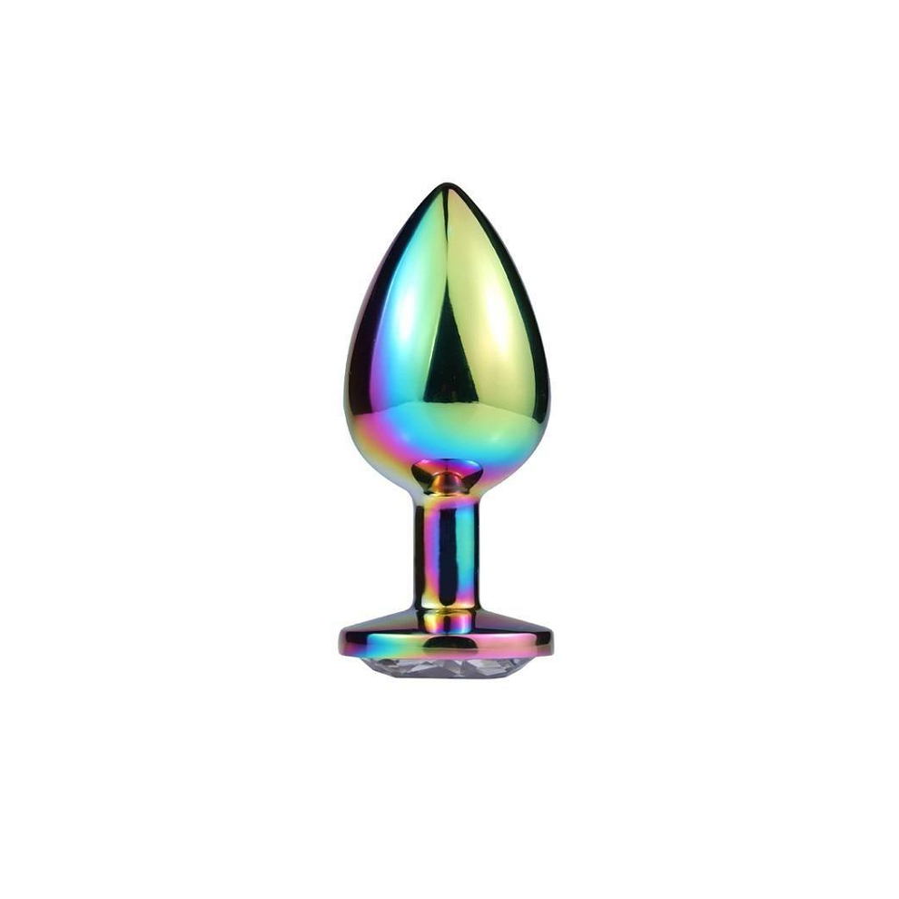 (Rainbow, S) 3 Sizes Stainless Steel Rainbow Anal Sex Toys Jewel Metal Butt Plug
