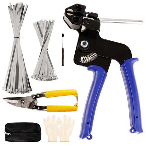 TEKCHIC Metal Cable Tie Kit - 200 Pcs Stainless Steel Cable Ties, Gun, Cutter, Remover, Gloves and Storage Bag
