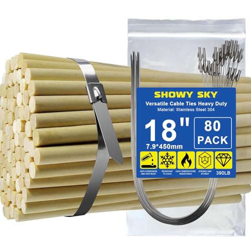 SHOWY SKY Metal Cable Ties, 390 Lbs 304 Stainless Steel Zip Ties Heavy Duty 7.9x450mm Rustproof Metal Tie Wraps for Bundling, Gardening, Exhaust Repair, Outdoor, Industrial
