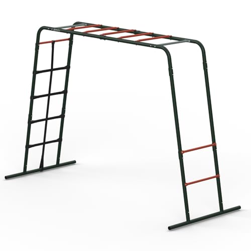 Plum Kids Outdoor Metal Climbing Frame with Monkey Bars, Swing & Cargo Net – Garden Playset for Children Ages 3+ | Durable Fun for Years | Safe & Strong