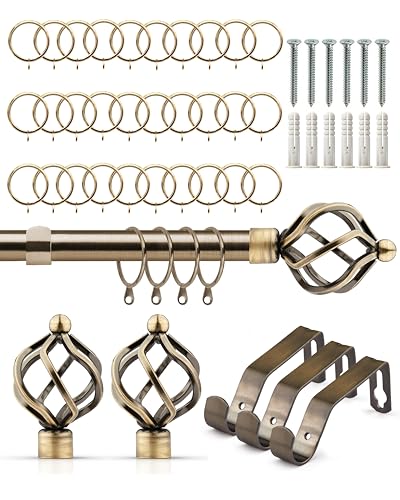 Emma Barclay Extendable Curtain Pole With Finials Rings Brackets & Fittings Sets 16-19mm in Antique Brass Metal Curtain Poles For Eyelet Curtains Rod - Bird Cage Collection 1.6m - 3m Antique Brass