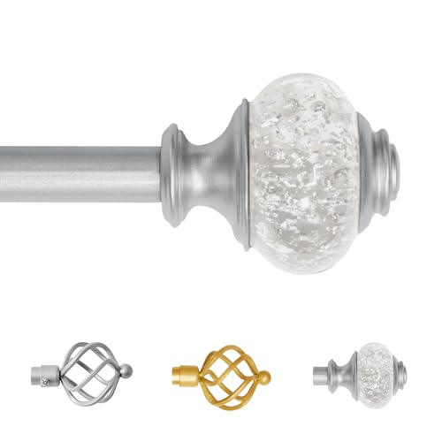 Imperial Rooms Plain Metal Ball Curtain Poles Metal Extendable - Includes Curtain Rod, 60mm Size Finials, Rings, Brackets & Fittings Set (Brushed Silver, 160-300 Cm, 63 Inches to 118 Inches)