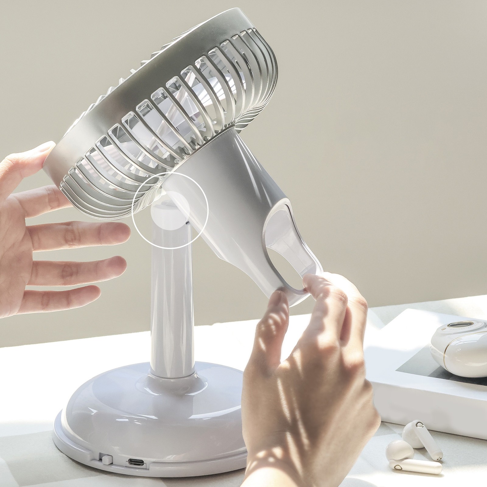 White Metal Mini Desk Fan (10 cm) - USB-Powered, Single Speed, & Adjustable Tilt, Ideal for Office, Home, Travel, & More - Single Piece