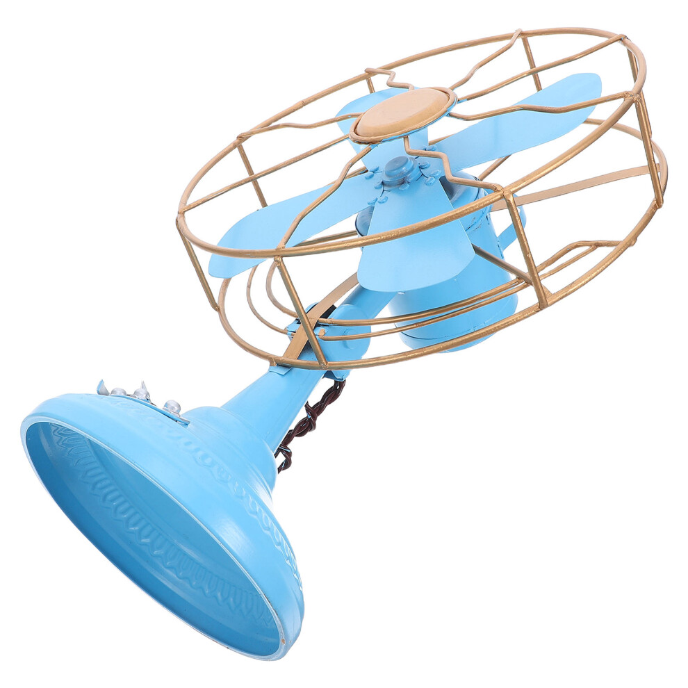 Vintage Table Fan Retro Style Exquisite Colors Metal Wide Base Antique Desk Fan Decor for Showcase Hallway Decoration