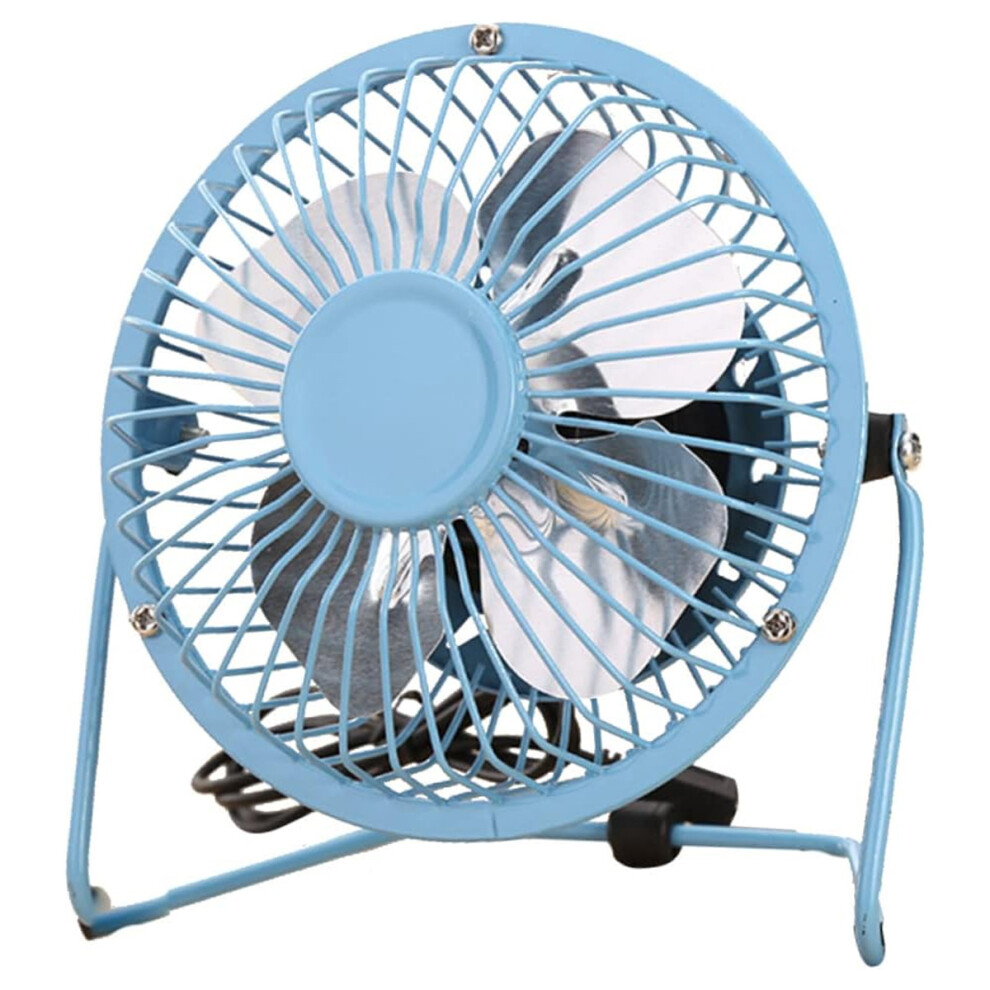4 Inch Metal USB Desk Fan - Small Blue Personal Air Circulator
