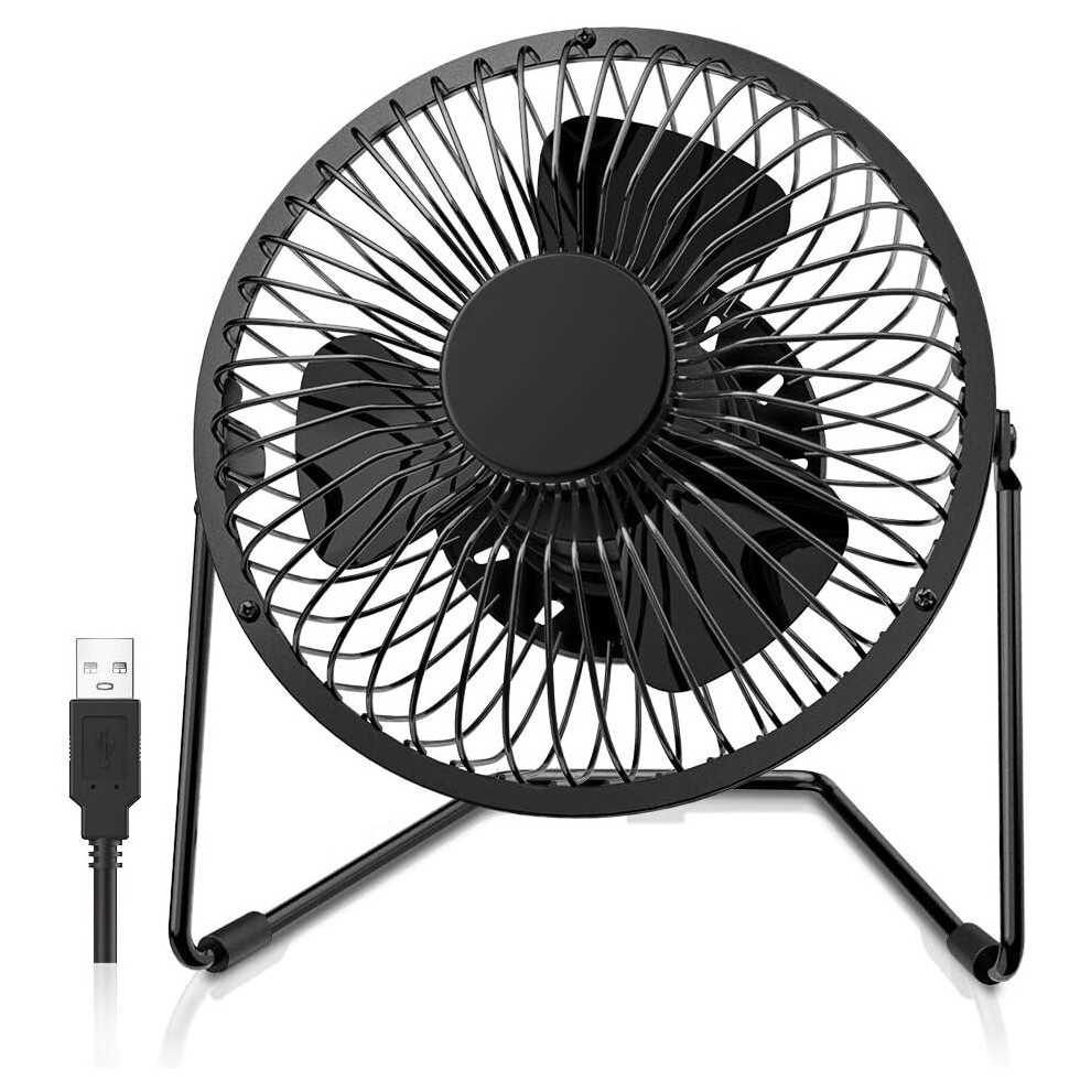 360 Rotating Silent Metal USB Mini Desk Fan for Home, Office, and Outdoors, 5 Inch, Black