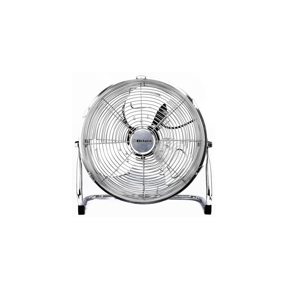 Belaco 12â Metal Floor fan, High Velocity Chrome Free Stand Cooling Fan, 3 Speed Desk Fan for home & commercial use, High Airflow BELF-30