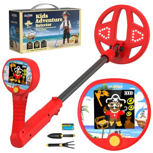 DR.ÖTEK Kids Metal Detector – Innovative Color LCD Display, 17cm LED-Lit Coil, Adjustable & Ultra-Lightweight Metal Detector Kids, Child-Safe Rounded Design for Ages 3-12, Red