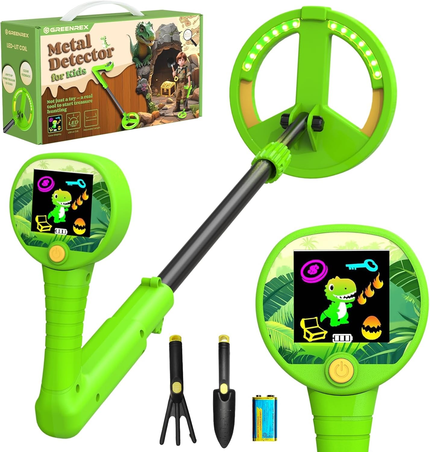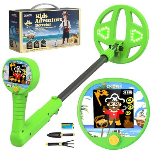 DR.ÖTEK Kids Metal Detector – Innovative Color LCD Display, 17cm LED-Lit Coil, Adjustable & Ultra-Lightweight Metal Detector Kids, Child-Safe Rounded Design for Ages 3-12, Green