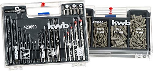 kwb KRAFTIXX 300-piece Bit, Plug, Drill, and Case Set with Bits, Wood Drills, Metal Drills & Masonry Drills – Various Universal Plugs from 5 – 10 mm