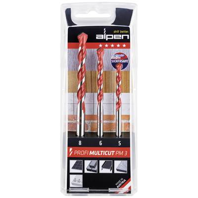 Alpen MultiCut 100703100 Carbide metal Multi-purpose drill bit set 3-piece 5 mm, 6 mm, 8 mm Cylinder shank 1 Set