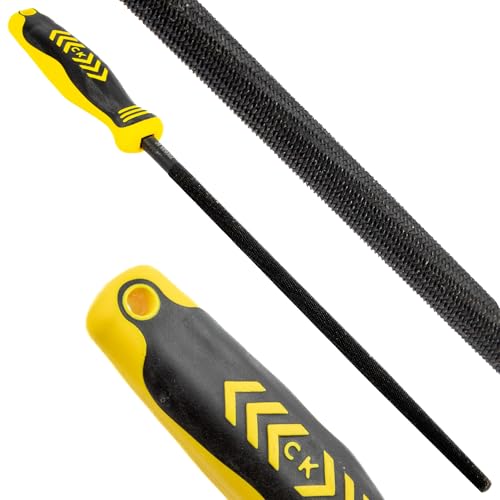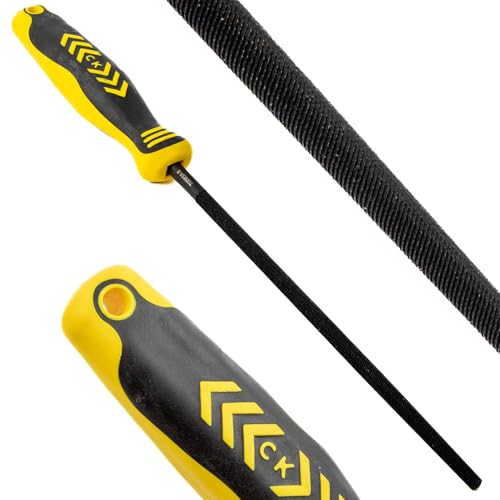 C.K Tools Engineers File Round 250mm Second Cut Tapered Point, High Carbon Black Oxide Steel, Ergonomic Two Component Grip, Secure Tang Bond, Lanyard Compatible, Professional Metal Filing CK T0083A 10