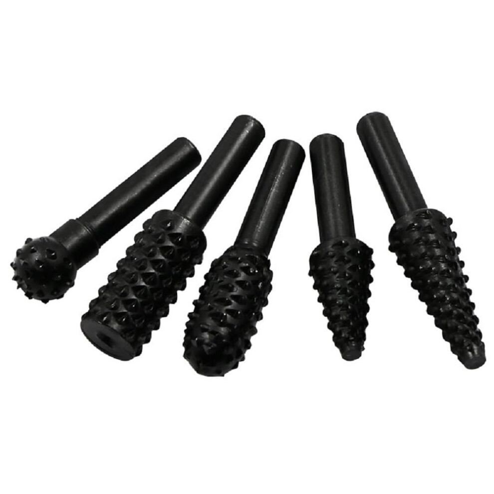 5 Pieces Rotary Burr Set Carbide Carving Bits Black Textured Filing Tools For Metal Wood Plastic