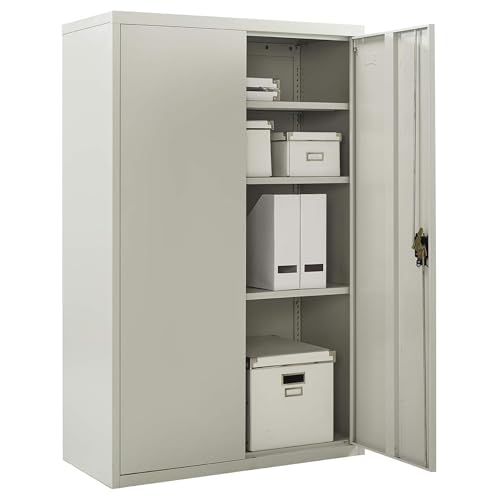 MMT Furniture Metal Storage Cabinet - 2 Door Lockable Filing Cabinet -Storage Cupboard for Home, Office, Files, Pantry, Utility, Garage Tools - 3 Shelf Unit - Grey