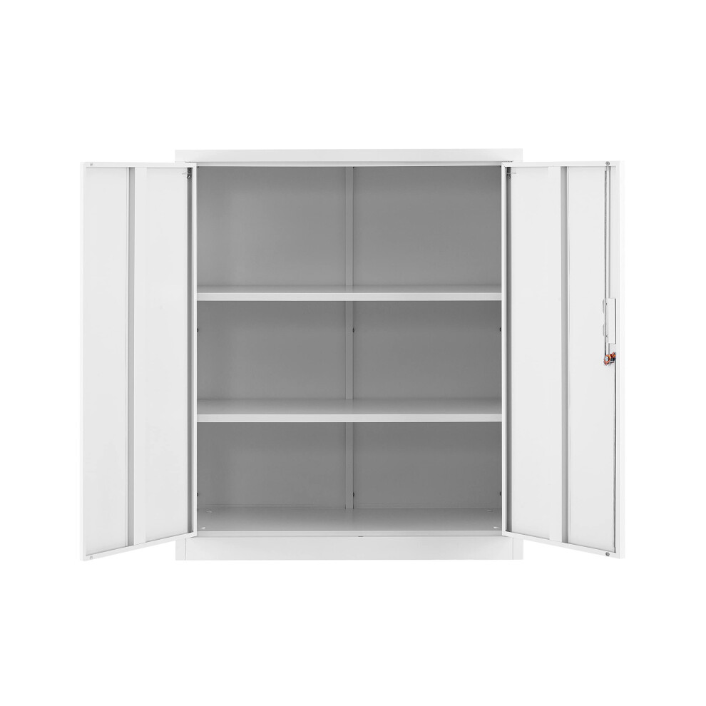 MMT Furniture Grey Metal Storage Cabinet FC-A10 2 Door Locking Office,Universal Steel Filing Cabinet for Home Office, Garage Tools, Shoe Storage, 2 Shelf, 106cm tall