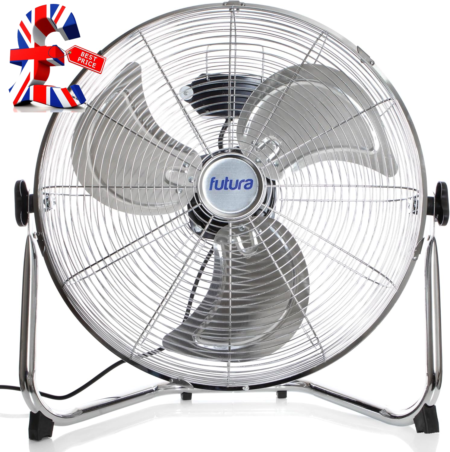 Futura 16 Inch Floor Fan High Velocity Portable Chrome Fan Adjustable 3 Speed Standing Industrial Large Cooling Metal Gym Fan