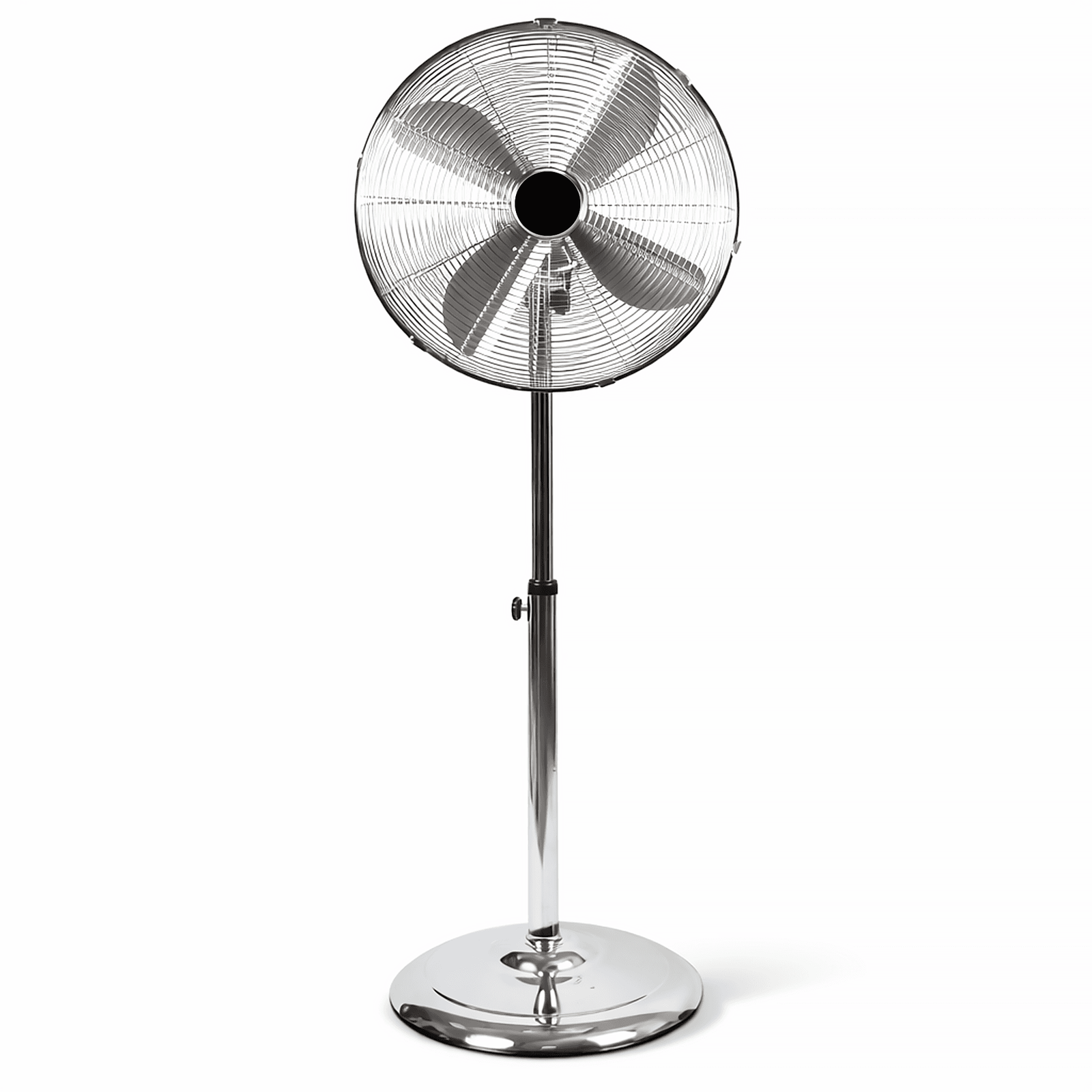 Netta Gym Floor Standing Fan – 12" Chorm Metal Desk Fan with 5 Blades – 3 Speed