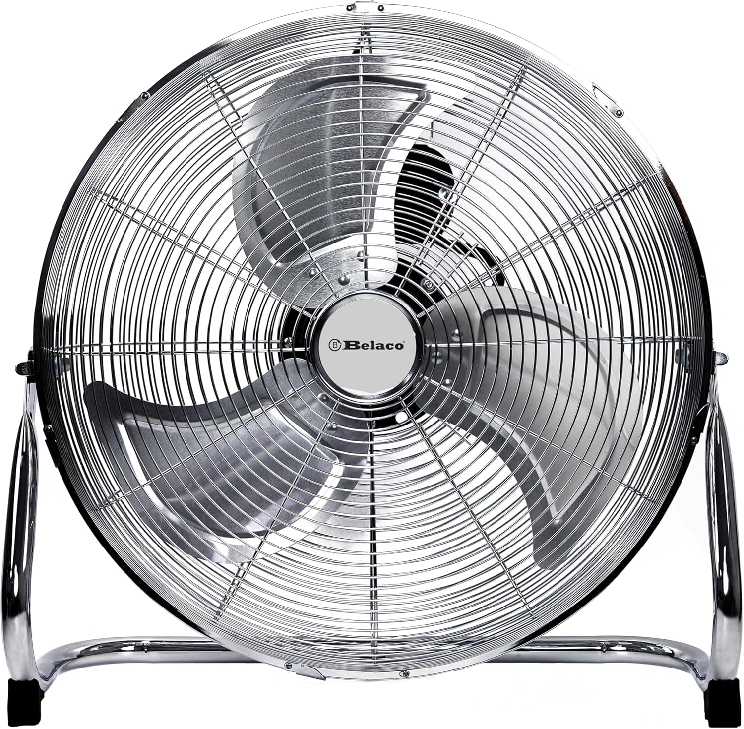 Belaco 18 Inch Metal Floor Fan, High Velocity Chrome Cooling Stand Fan, 3 Speed