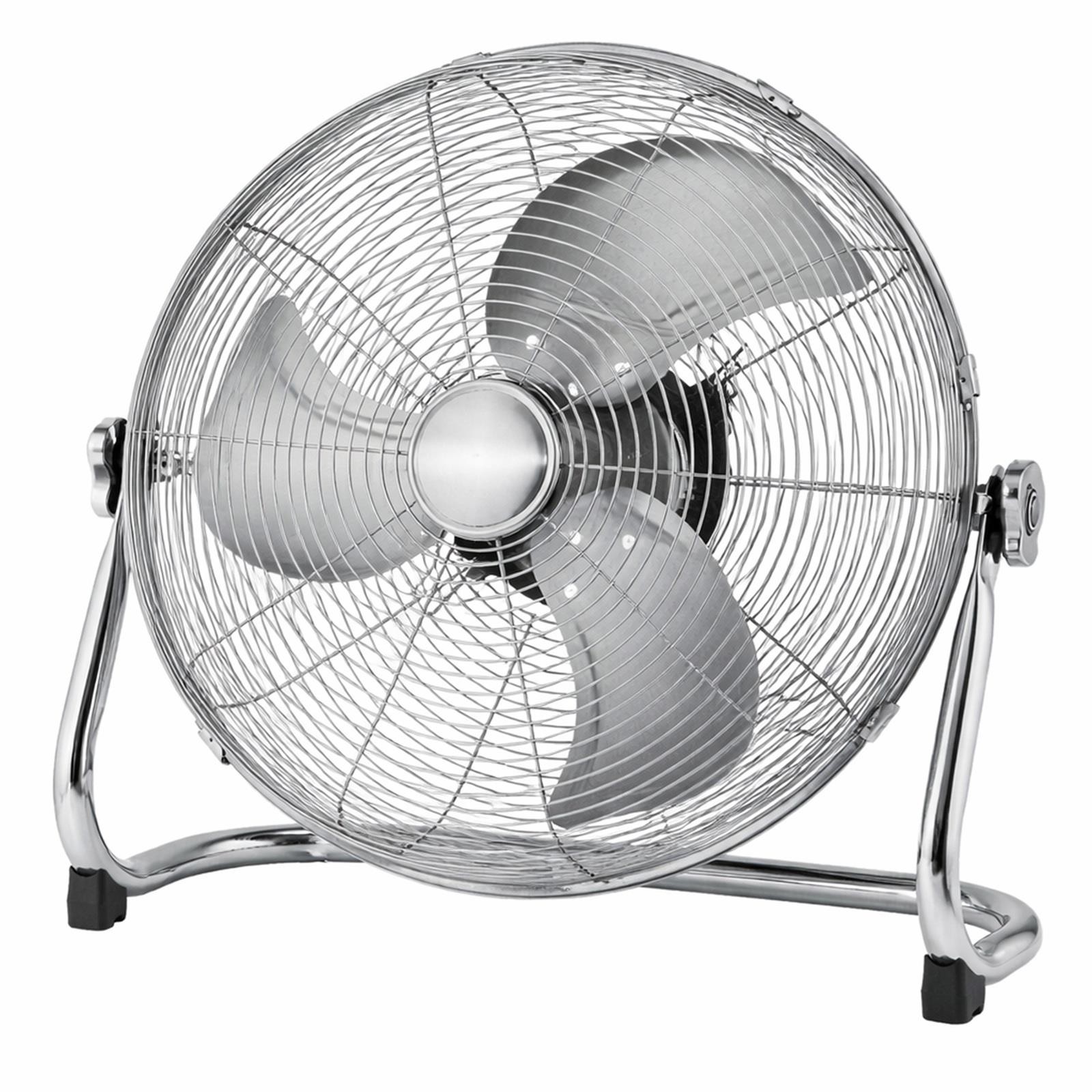 "Metal floor fan 12" High velocity chrome free stand fan cooling fan industrial fan 3 speed desk fan table fan sturdy housing high airflow powerful",
