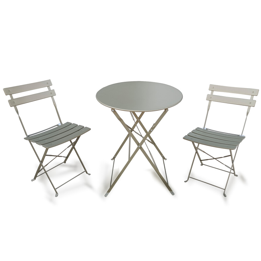 Home Grey Bistro Set Outdoor Patio Garden Furniture Table and 2 Chairs Metal Fra