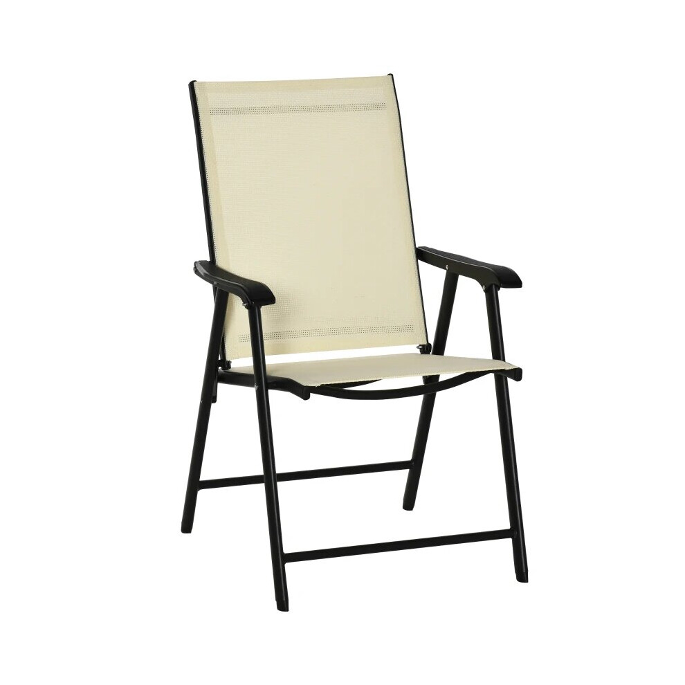 Yaheetech Folding Outdoor Chairs Set of 2 with Metal Frame, All Weather Foldable Dining Chairs with Backrest and Armrest for Garden, Lawn, Yard and Beach, Beige