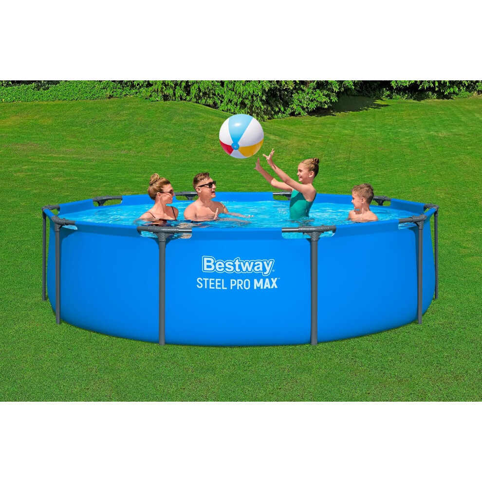 Bestway Steel Pro Max Above Ground Pool, Metal Frame Round Swimming Pool, Family Swimming Pool with Windows, Complete Set 14ft