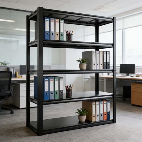 WanKaMom Office Heavy Duty Storage Rack, 5-Tier Metal Shelving—Garage Storage Shelves, Adjustable Boltless Shelving for Shed(Black,Large)