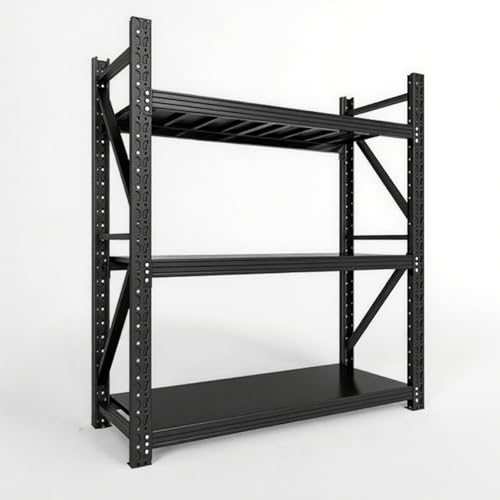 WNGJZZYC 3-Tier Heavy Duty Shelving, Adjustable Metal Garage Shelves, Industrial Storage Racks, Suitable for Warehouses, Supermarkets and Garages(Black,180x150x60cm/71x59x24in)