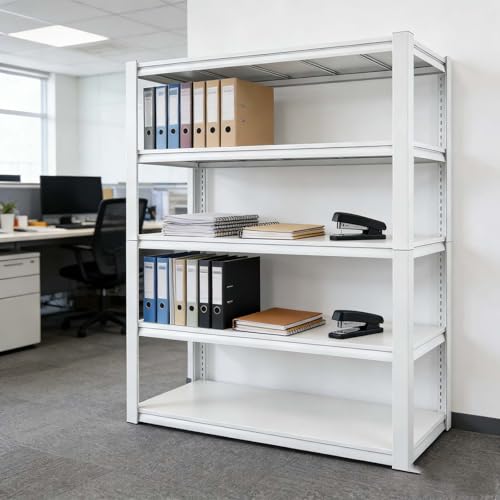 WanKaMom Warehouse & Office Storage Rack, 5-Tier—Heavy Duty Metal Shelving, Garage Storage Shelves, Boltless Adjustable Shelves(White,Large)