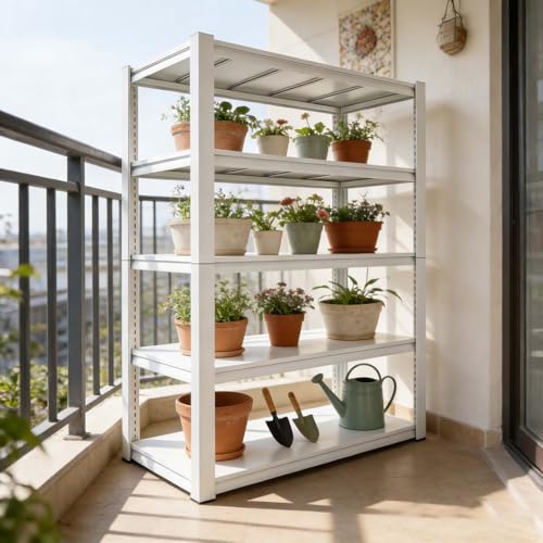 WanKaMom Shed Heavy Duty Storage Rack, 5-Tier—Metal Storage Shelves, Garage Shelving, Adjustable Boltless Shelves for Basement(White,Medium)