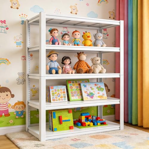 WanKaMom Sturdy Boltless 5-Tier Shelves—Heavy Duty Metal Storage Shelves, Garage Storage Shelving, Adjustable Storage Rack for Office(White,Medium)