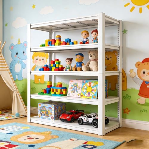 WanKaMom 5-Tier Heavy Duty Boltless Rack—Metal Storage Shelves, Garage Shelving Unit, Adjustable Sturdy Shelves for Shed & Office(White,Large)