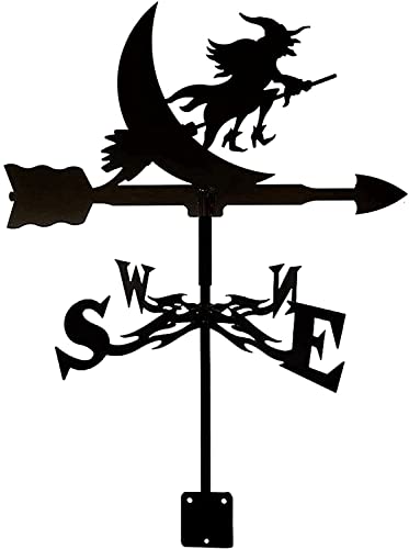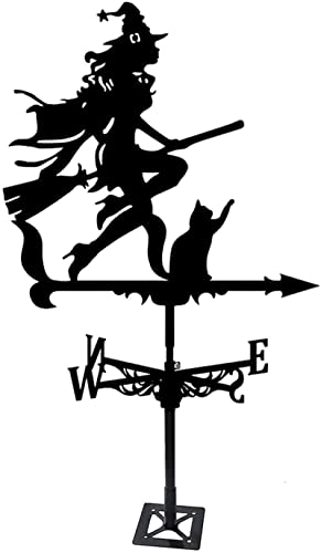 WLLXTK Weather Vanes for Sheds Weather Vane Witch and Cat Metal Stainless Steel Weathervane with Wind Direction Indicator, Metal Bracket Wind Vane for Outdoor Garden Courtyard Decoration