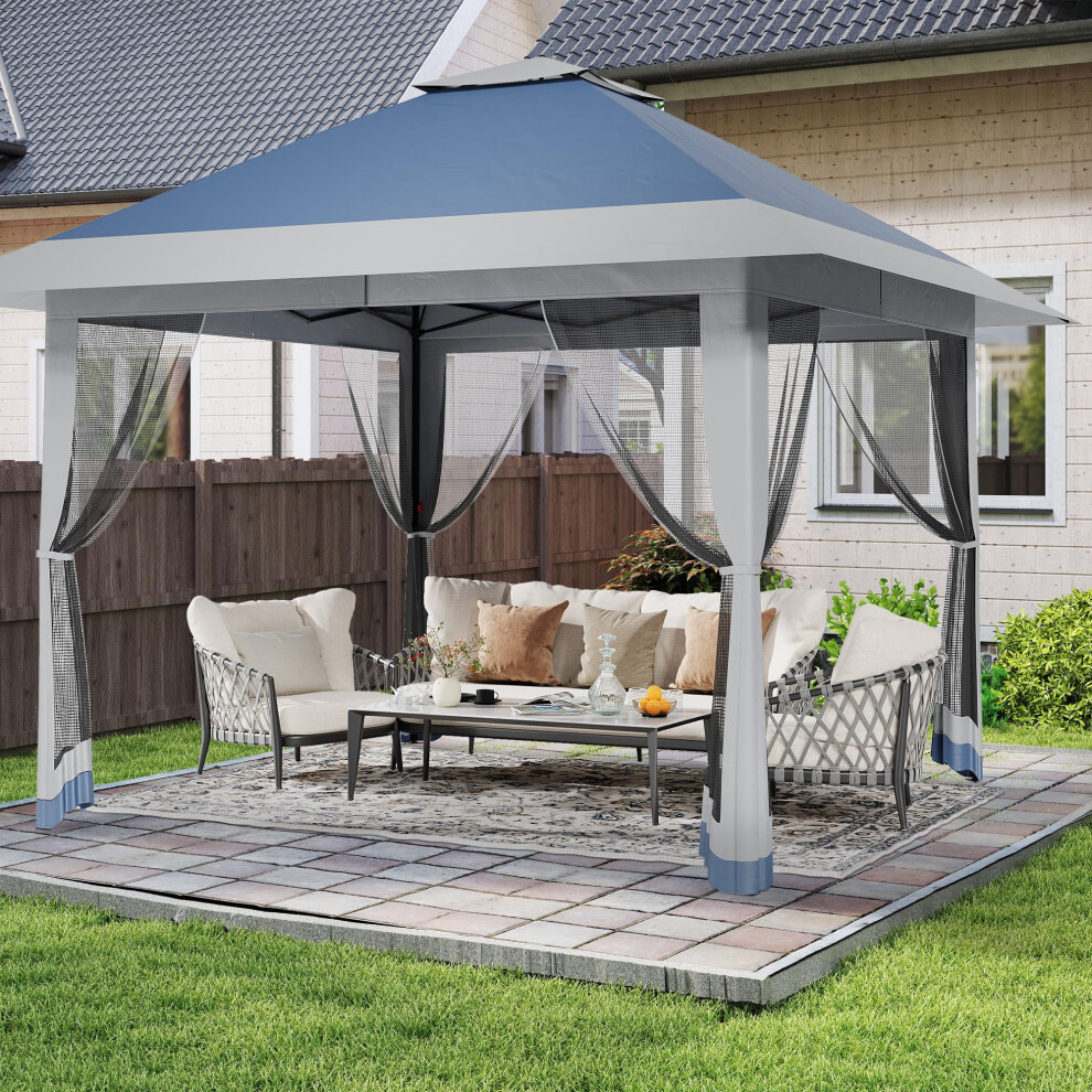 Outsunny 3 x 4m Garden Gazebo with Sides, Double Roof Metal Gazebo, Grey
