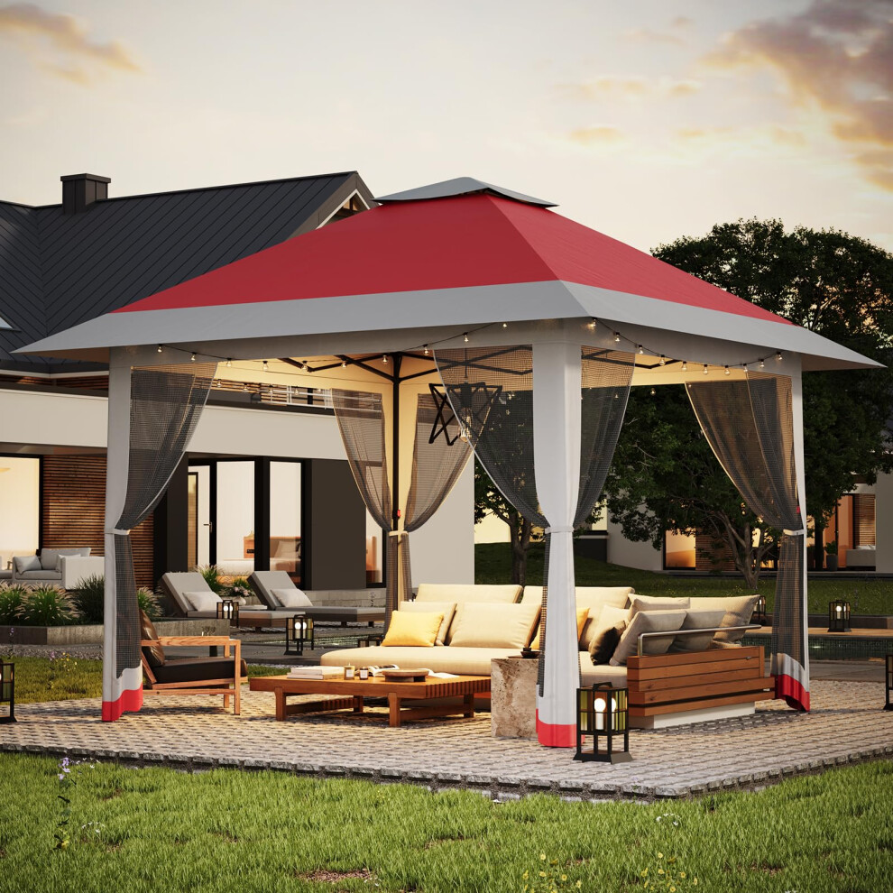 Garden Gazebo 4 x 4 m, Pop Up Gazebo with Mesh Sides, Double Roof Marquee Canopy Party Tent with Metal Frame, Waterproof Outdoor Instant Patio Canopy