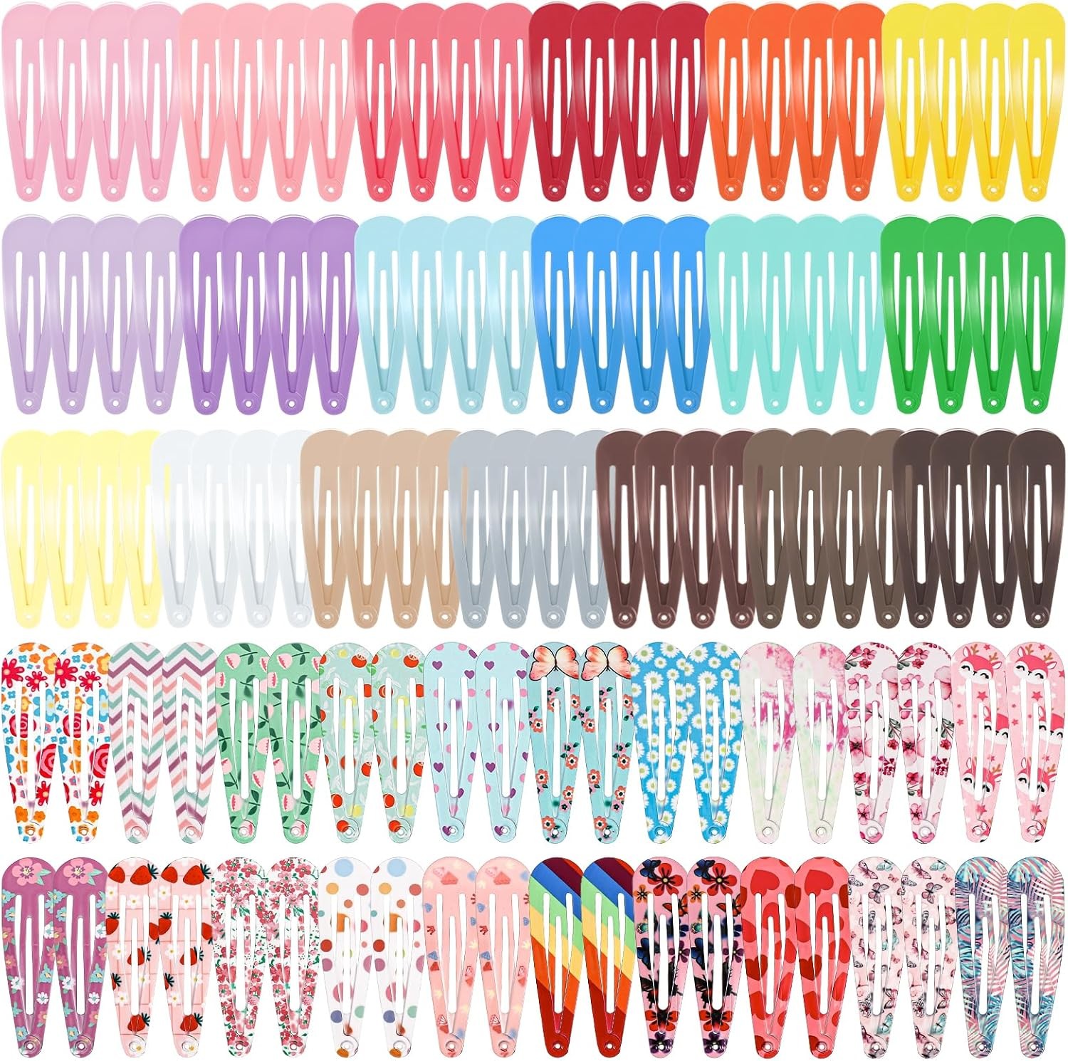 obeoby 120 Pcs Metal Snap Hair Clips for Girls, 2 Inch Cute Hair Barrettes Acce