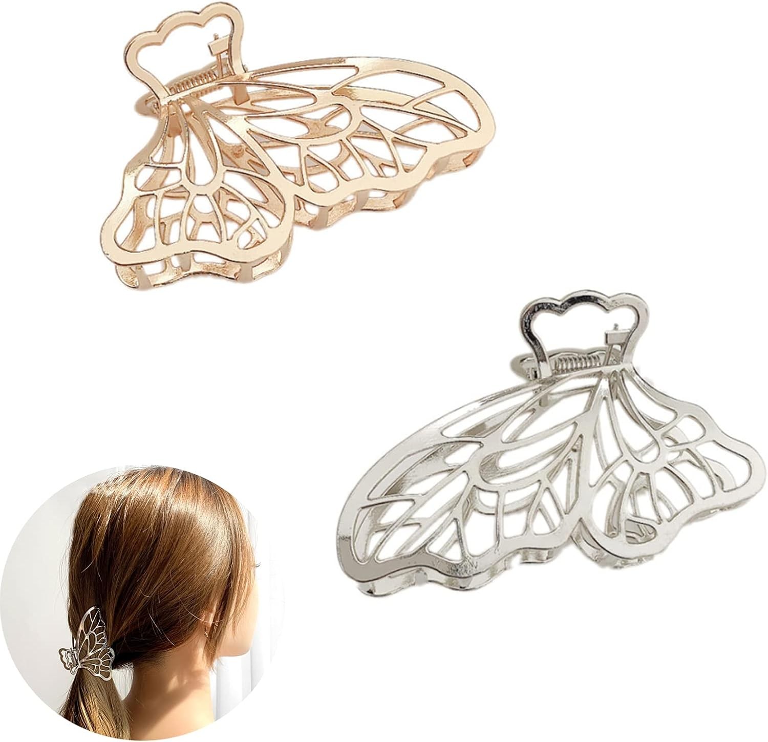 2 Pcs Metal Butterfly Hair Clips - Claw Barrette with Hollow Jaw for Women & Gi